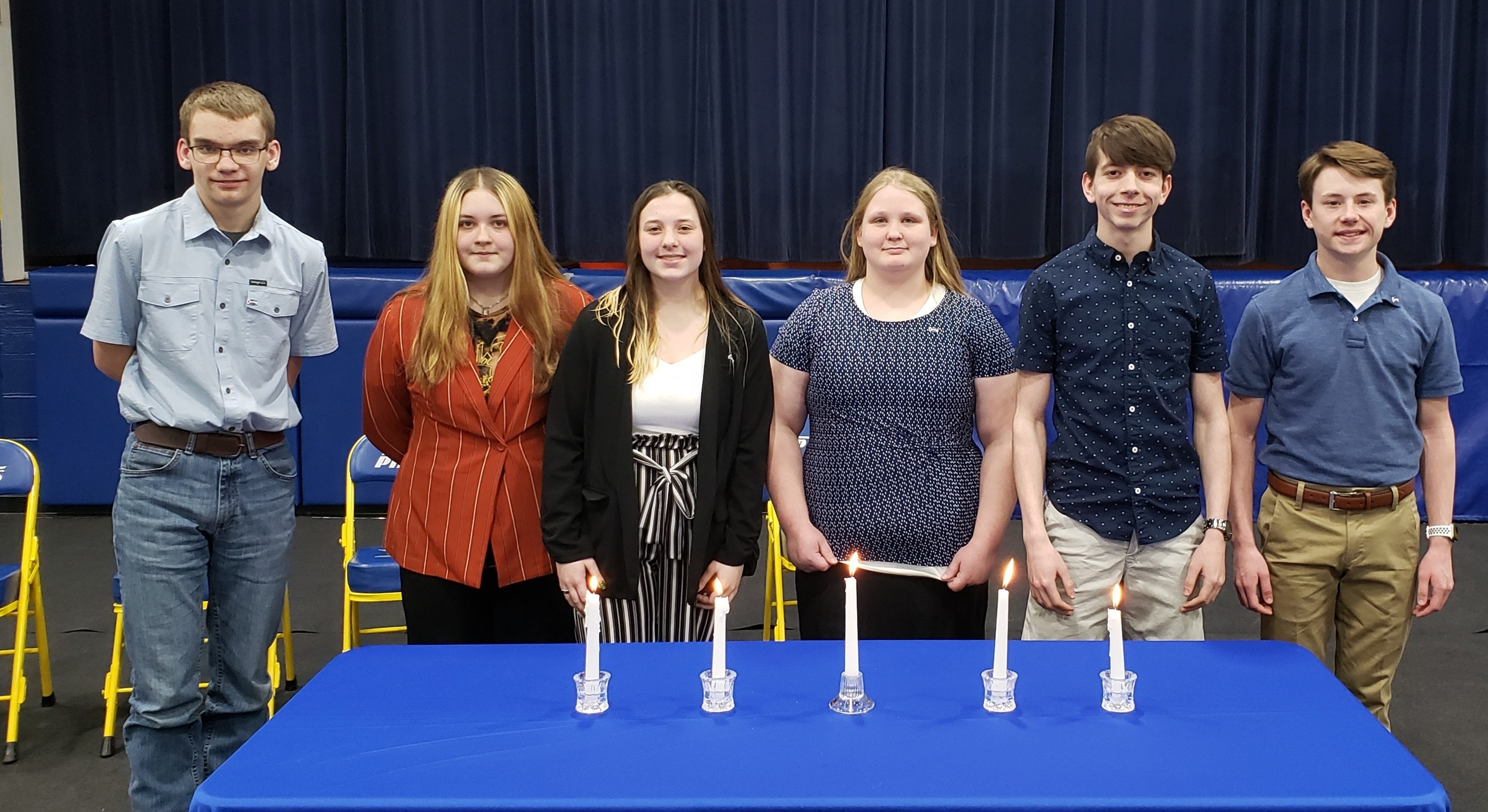 The 2022 NHS Inductees from left to right:Lowell Charlton, Cameron Kates, Ashlee Klinksick, Leanna Tower, Caleb Phillips and Chase Whitworth